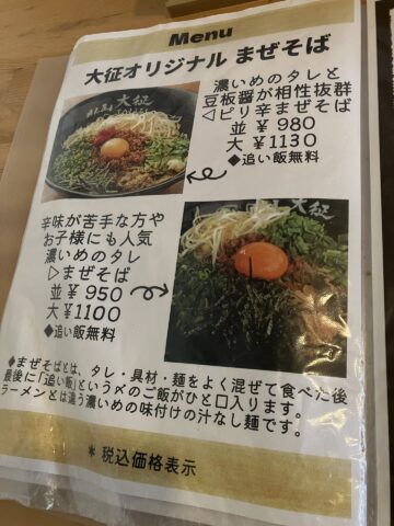 店舗名 | めん屋大征 |