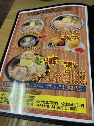 今回は私はラーメンの並、家内は麻婆ラーメンの並を辛さ控えめでお願いした。先に出された壺漬けだったり、大好きな梅干しを頂いたりしながら出来上がりを待つ。