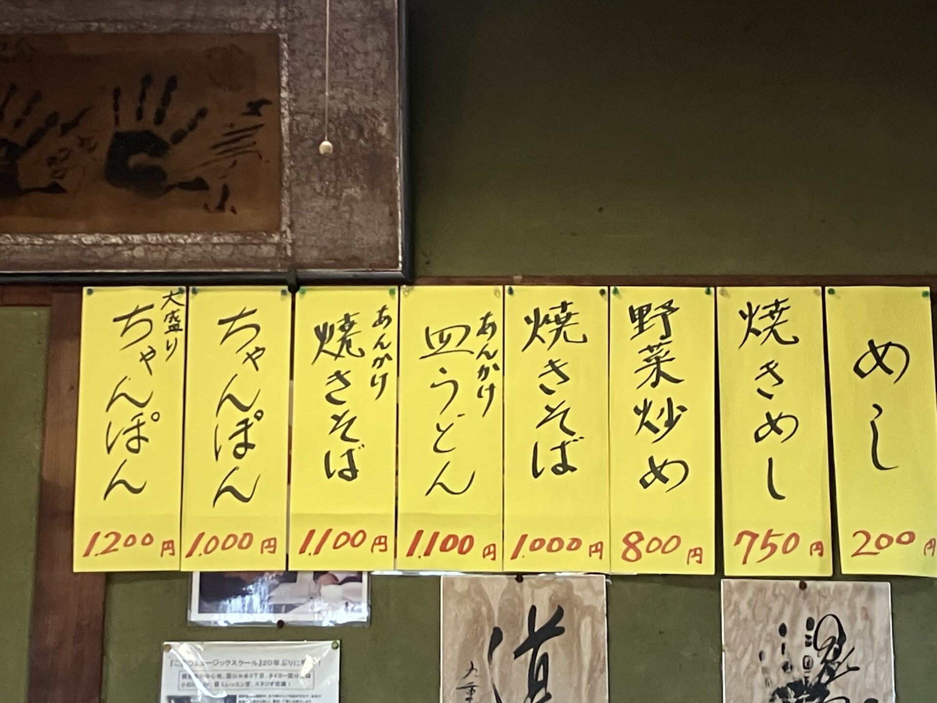 メニューの下に貼られたサイン色紙は元千代の富士のものだった。手形だったりサイン色紙だったり先代のご店主がお好きだったようだ。