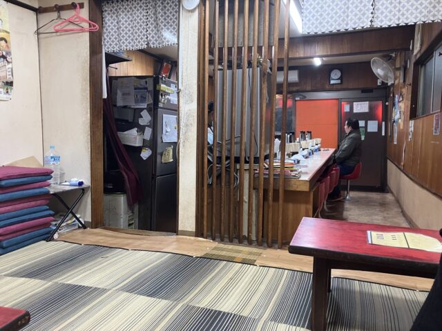 19時過ぎだったので流石にまだ早いかな、とお店を覗くと暖簾はかけられているが準備中の札。ダメもとで店内に入り大丈夫ですか?と聞くとOKだとのこと。準備中の札になっていることを知らせて入店。懐かしいと思いながら座敷へ。